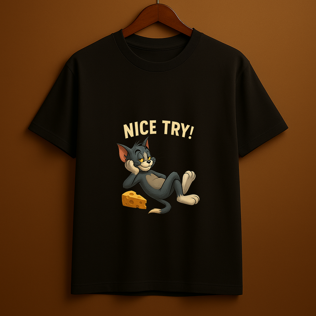 The Nice Try Tee features a confident Tom chilling with his cheese and throwing that iconic side-eye flex. It's built for those with cool minds, sharp comebacks, and unbeatable main-character energy.